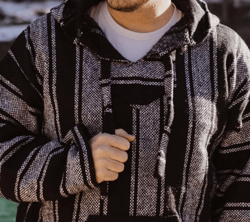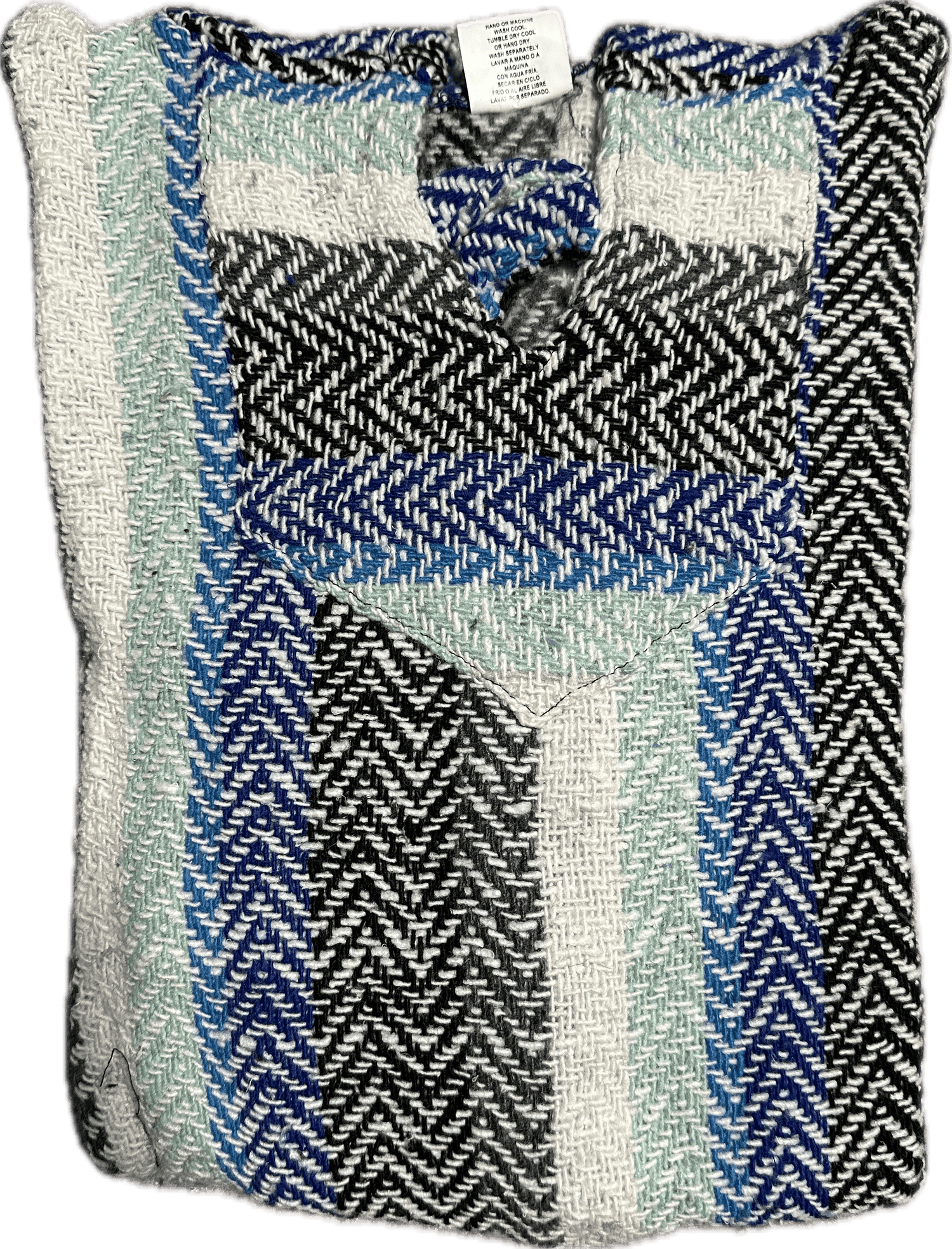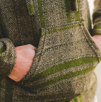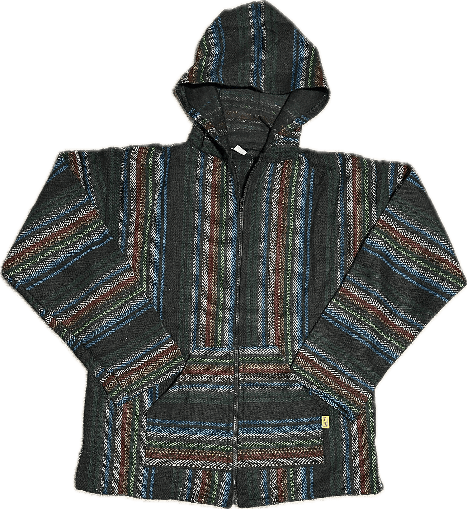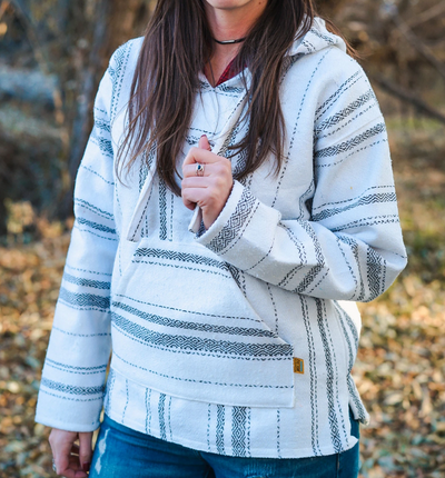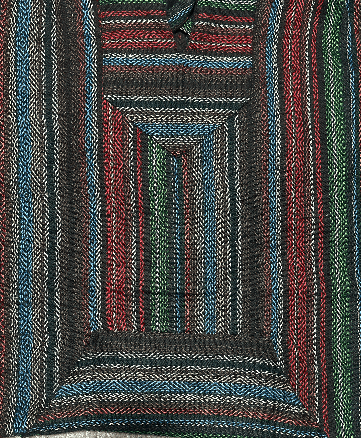 - Our Baja Hoodies aka "Drug Rugs" are all Handwoven from 100% Recycled Fibers, hand-picked to ensure the highest quality!