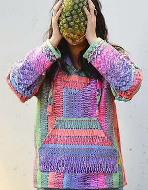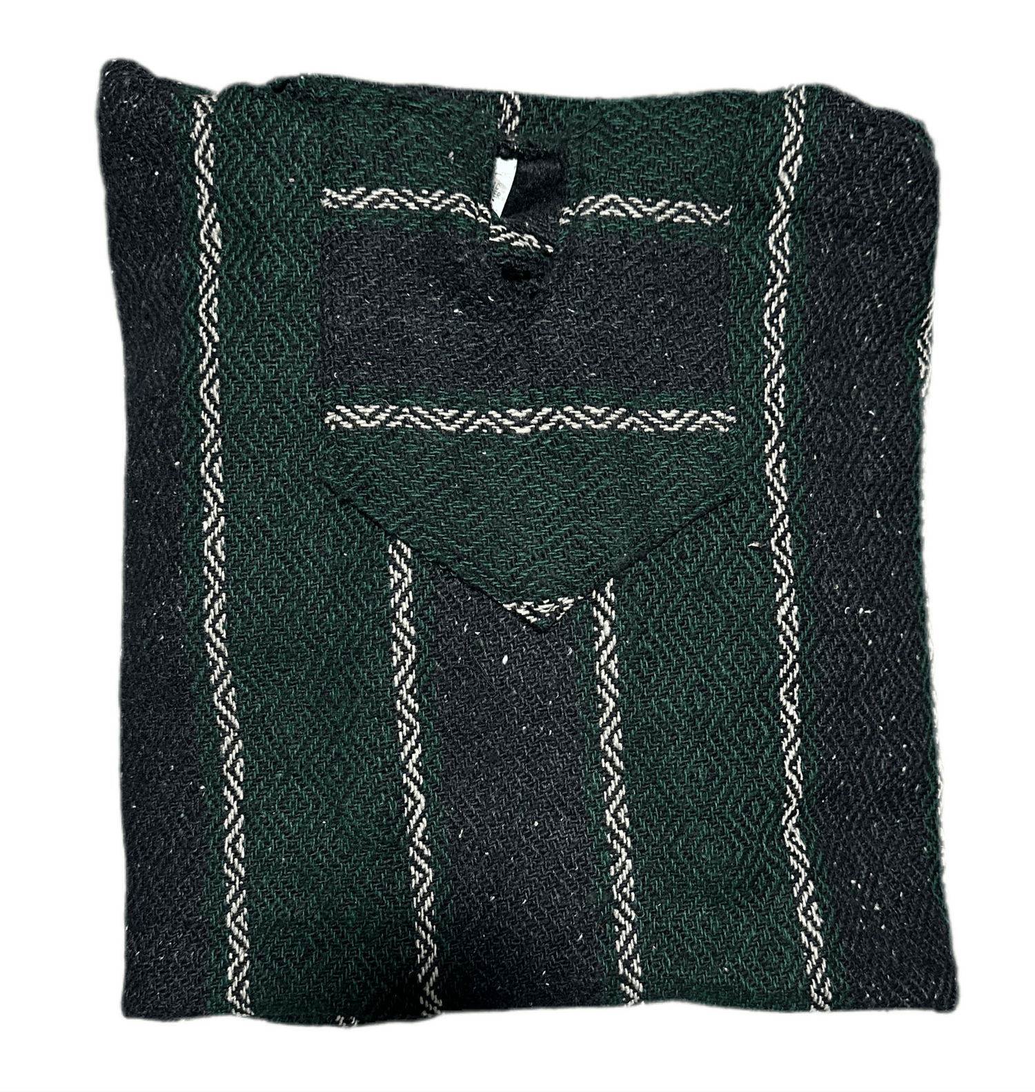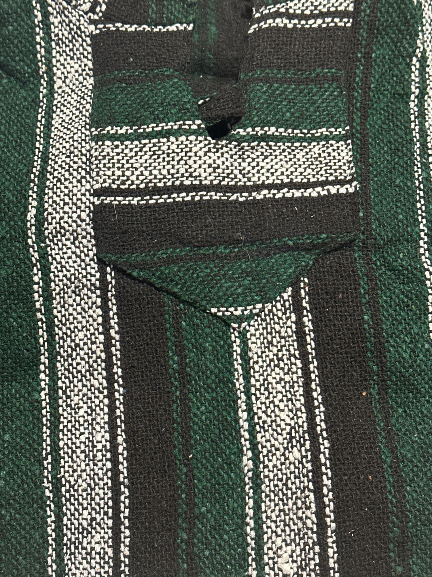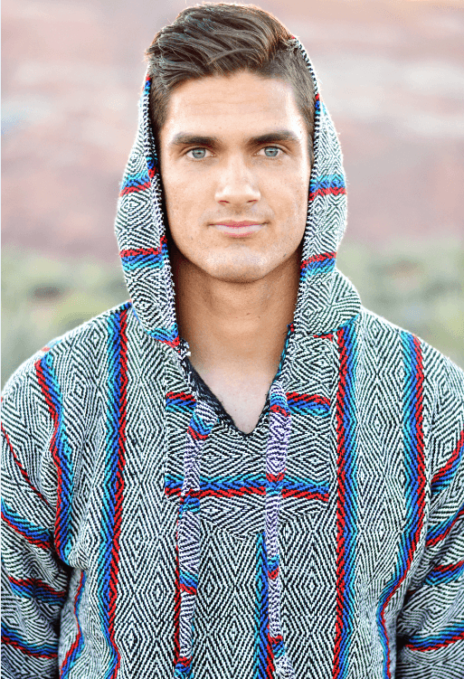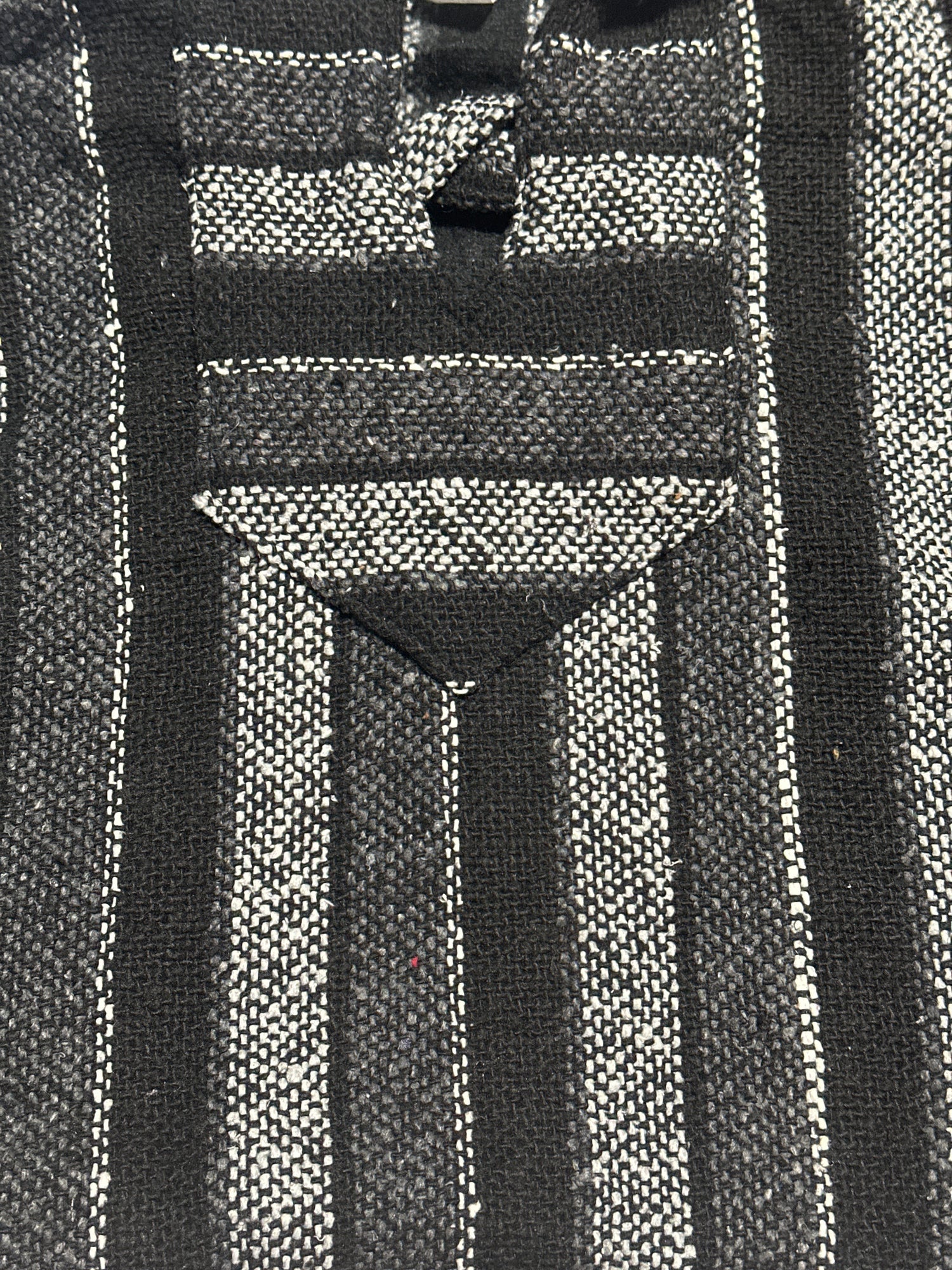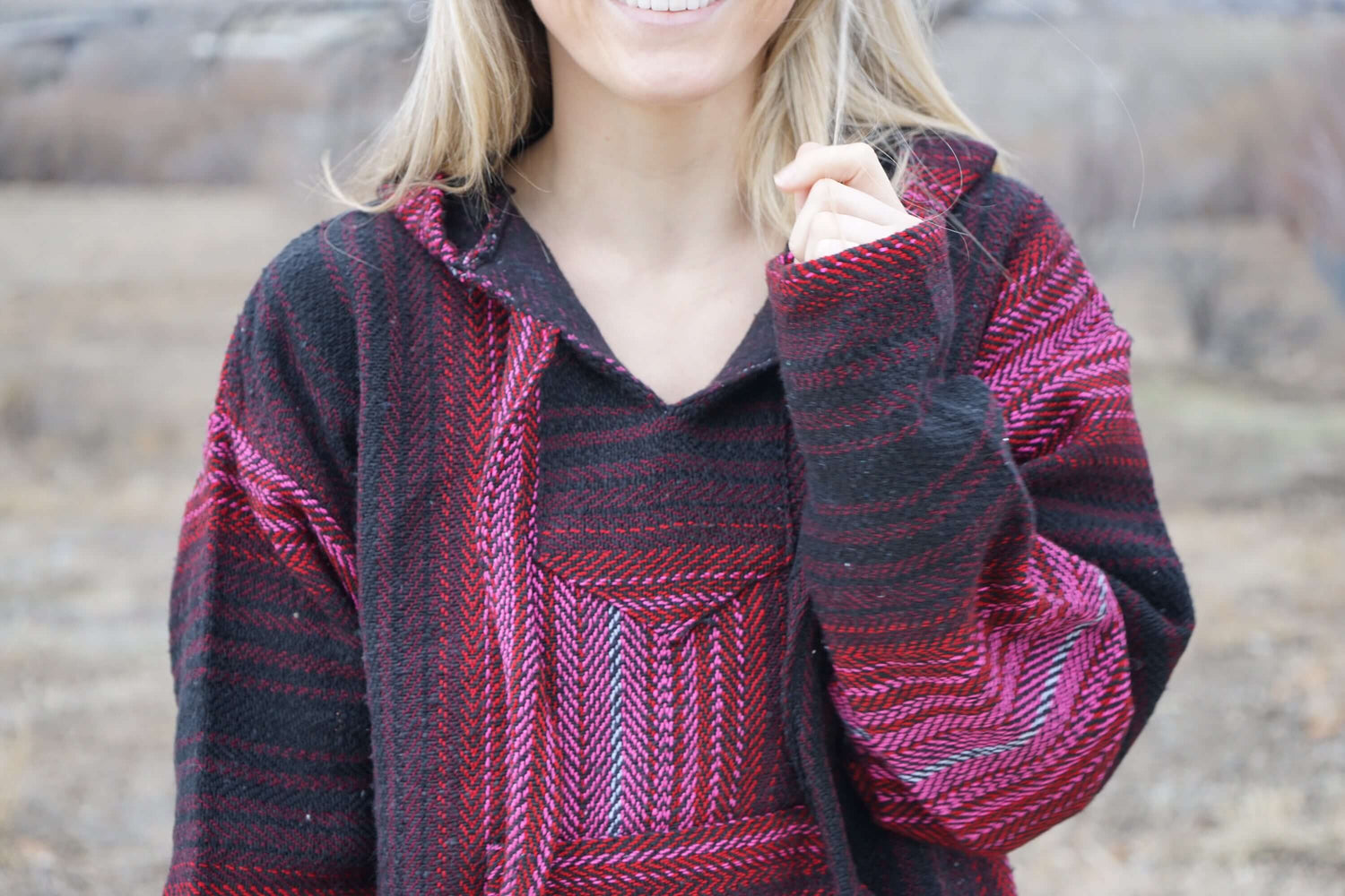 - Our Baja Hoodies aka "Drug Rugs" are all Handwoven from 100% Recycled Fibers, hand-picked to ensure the highest quality!