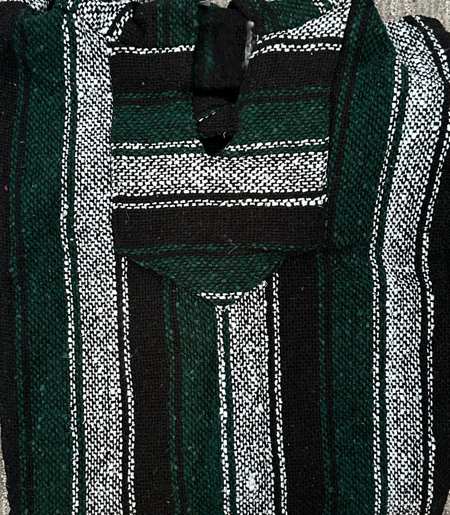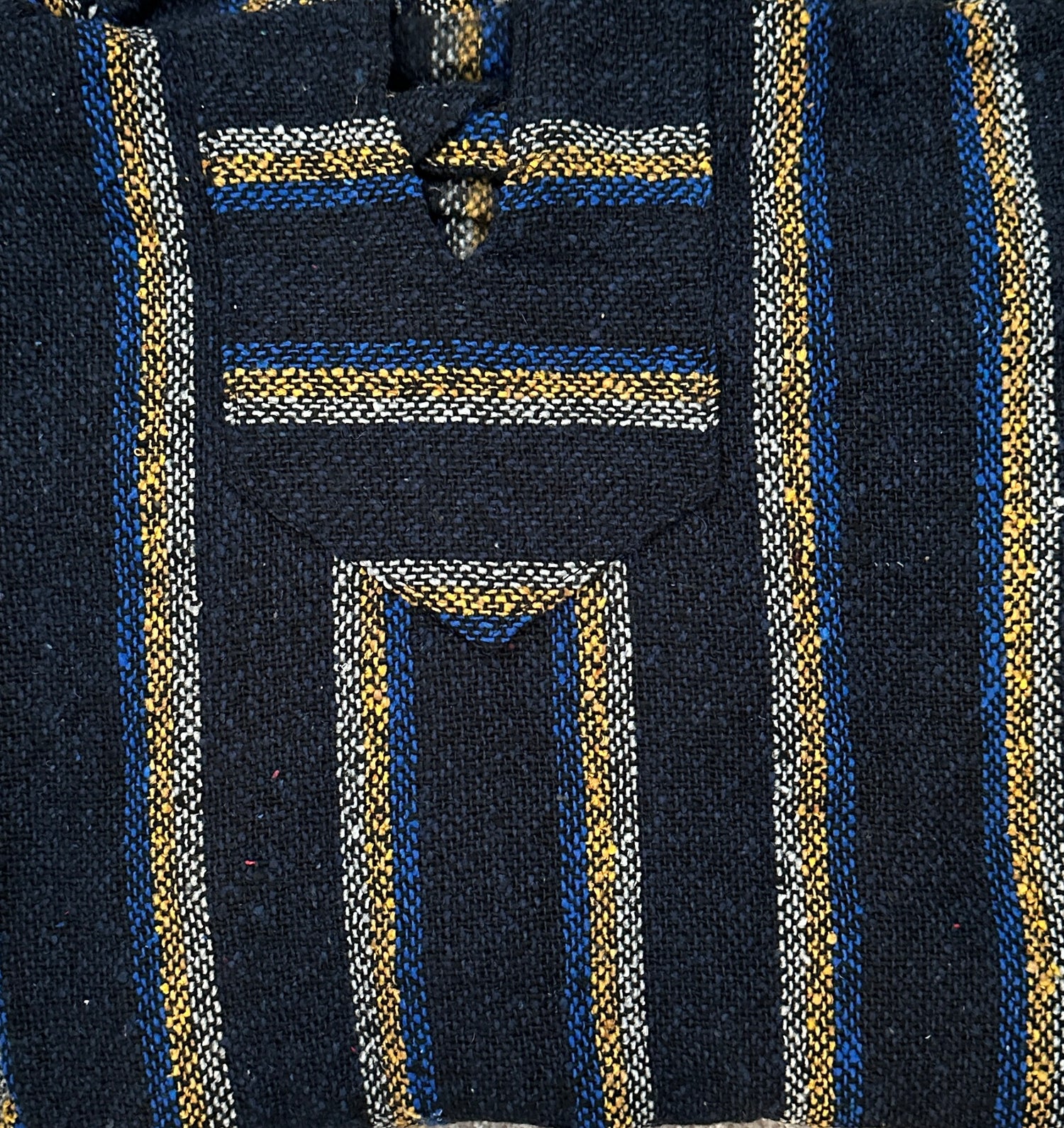 - Our Baja Hoodies aka "Drug Rugs" are all Handwoven from 100% Recycled Fibers, hand-picked to ensure the highest quality!