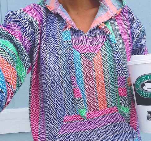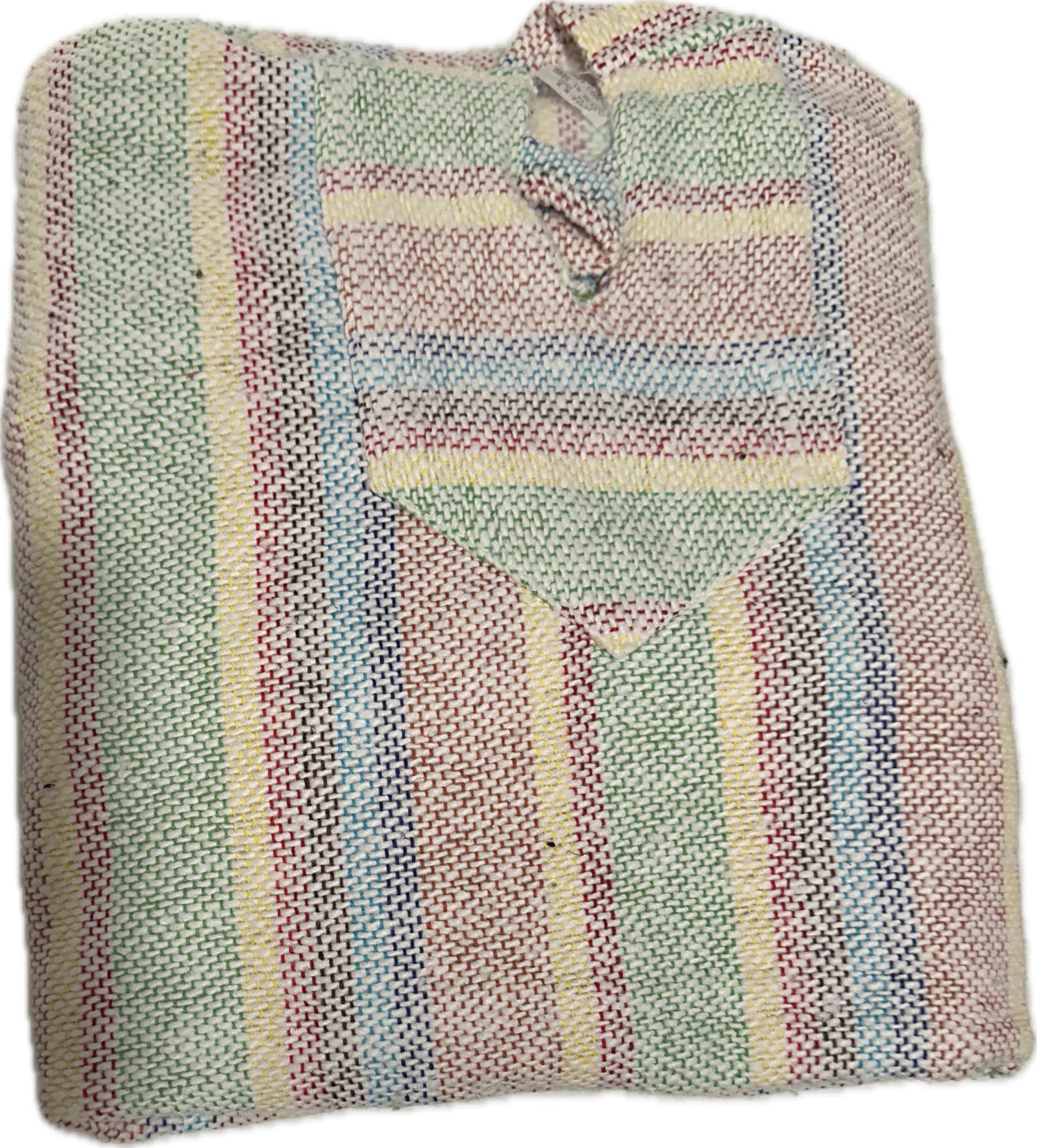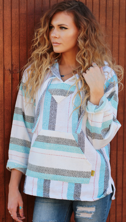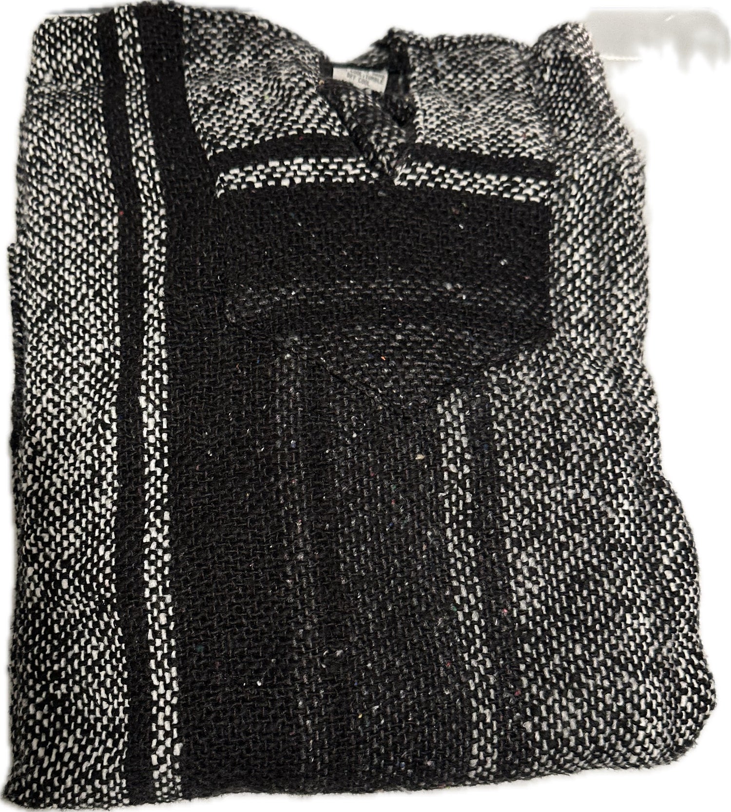 - Our Baja Hoodies aka "Drug Rugs" are all Handwoven from 100% Recycled Fibers, hand-picked to ensure the highest quality!