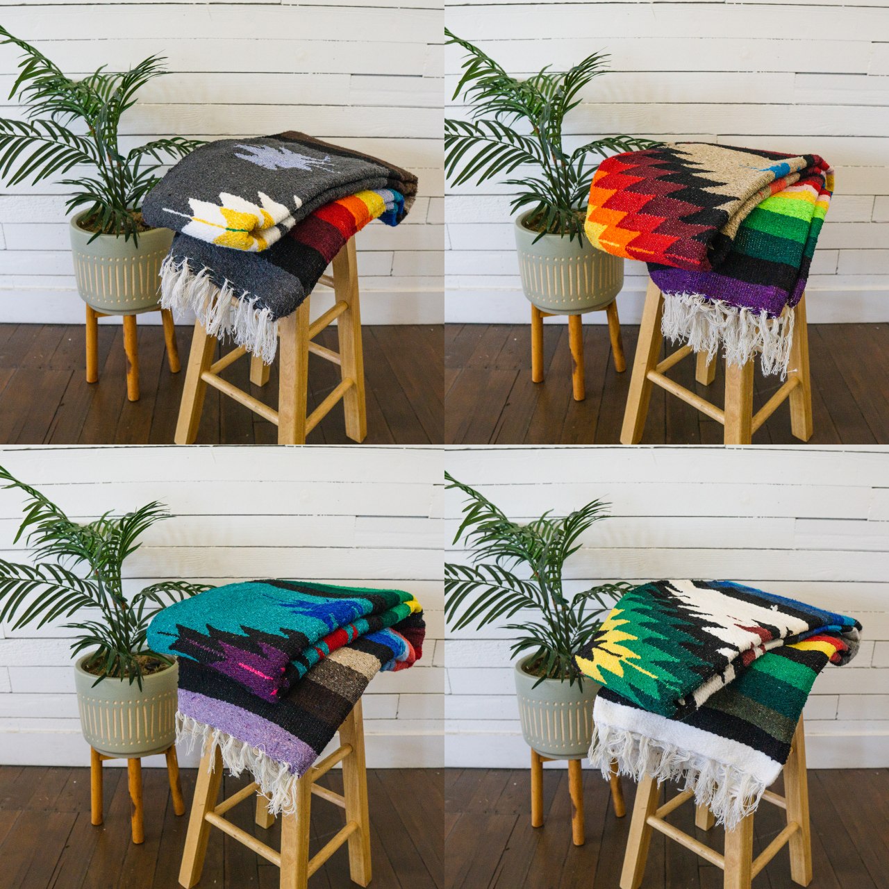 This Mexican blanket can be used as a yoga blanket, beach blanket, picnic blanket, a decorative throw, or a yogi gift.